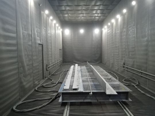 оснащён кран-балкой грузоподъёмностью 5т. Основным технологическим оборудованием является дробеструйная и покрасочная камеры ЭКСПЕРТ-1244 с выделенным местом для подготовки изделий под дробеструйную обработку и нанесения ЛКП: